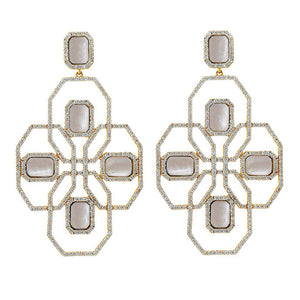 These elegant and extraordinary drop earrings are suspended from a sparkling stud and feature the signature octagonal motif from Carol's collection. Clean lines, harmonious shapes and open space create an eye catching contemporary aesthetic. Craftsmanship and quality are evident in the meticulous hand settings. Carol pairs these stunners with her bold and brilliant Juno Warrior Bracelet.