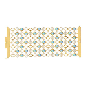 Carol is all about the power and impact of a wide sparkling "wonder woman" style bracelet. The Juno bracelet embodies the spirit and strength of a bold and beautiful soul. We love the contemporary geometric design, commanding size and eye catching brilliance of this iconic stunner. It's craftsmanship and quality are the pillars of Carol's collection. For a dramatic statement, pair with our Juno Shield drop earrings.