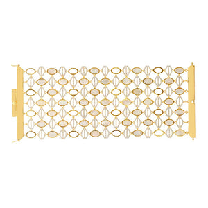Carol is all about the power and impact of a wide sparkling "wonder woman" style bracelet. The Juno bracelet embodies the spirit and strength of a bold and beautiful soul. We love the contemporary geometric design, commanding size and eye catching brilliance of this iconic stunner. It's craftsmanship and quality are the pillars of Carol's collection. For a dramatic statement, pair with our Juno Shield drop earrings.