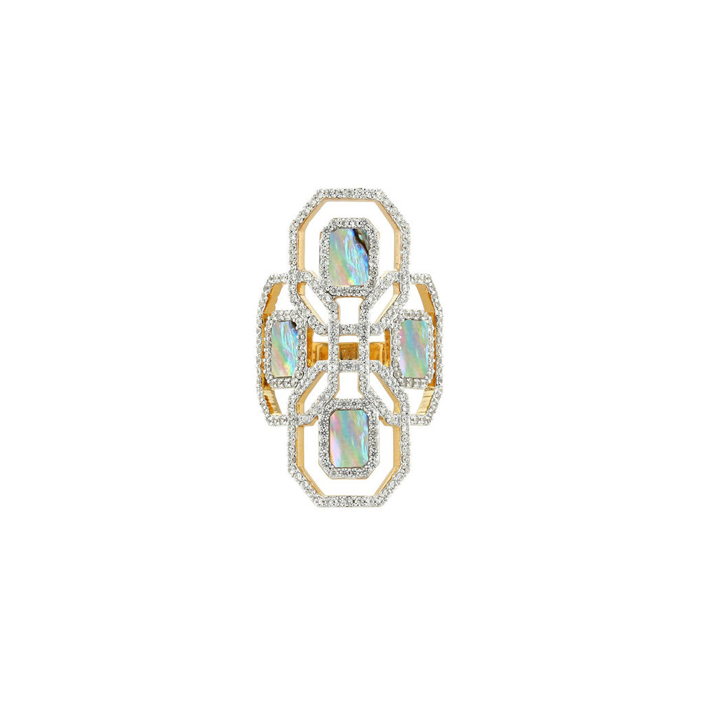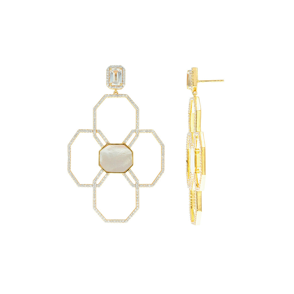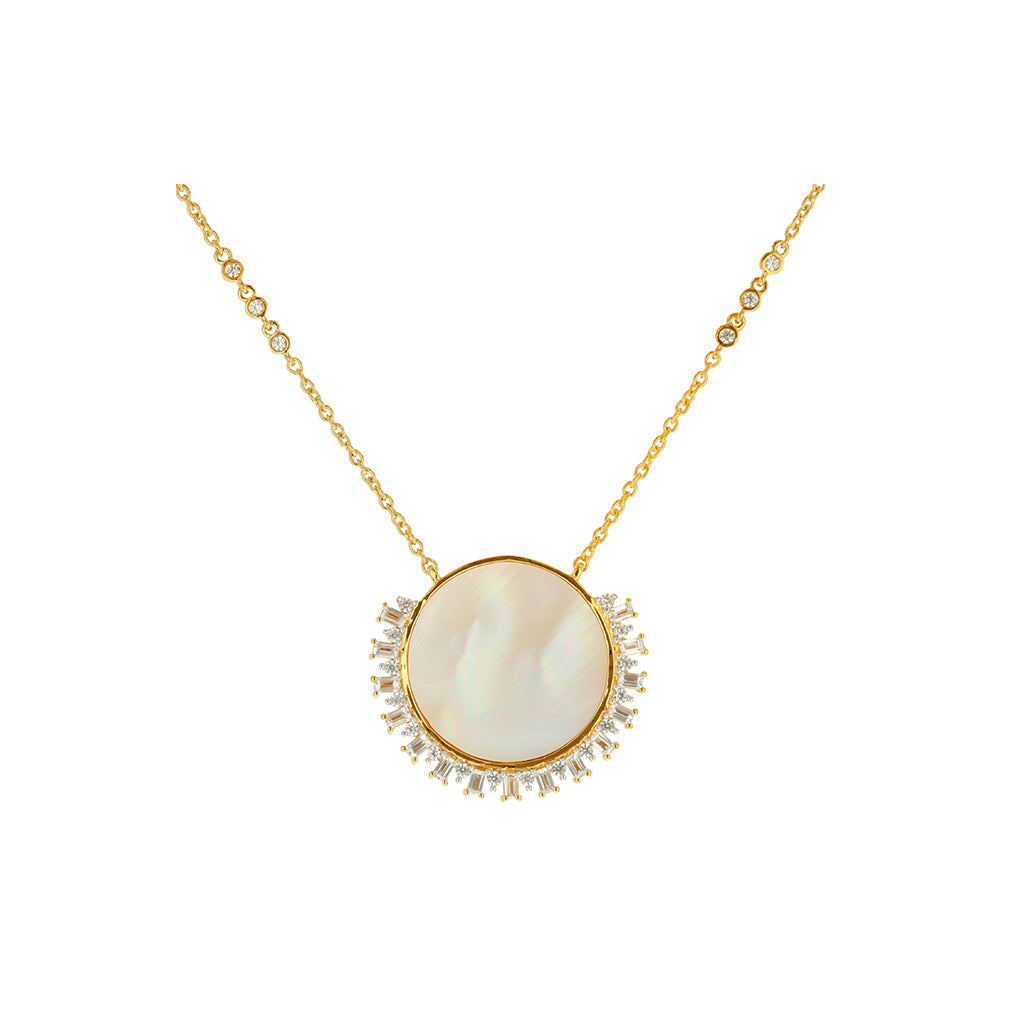Heaven meets earth with this delicate gold necklace. Eight floating lucky clovers dance on the skin creating a modern day goddess glow. Wear stand alone or layer as an icon of luck. To complement the look, Carol loves to wear this necklace with the Artemis Huggie Hoop Earrings.